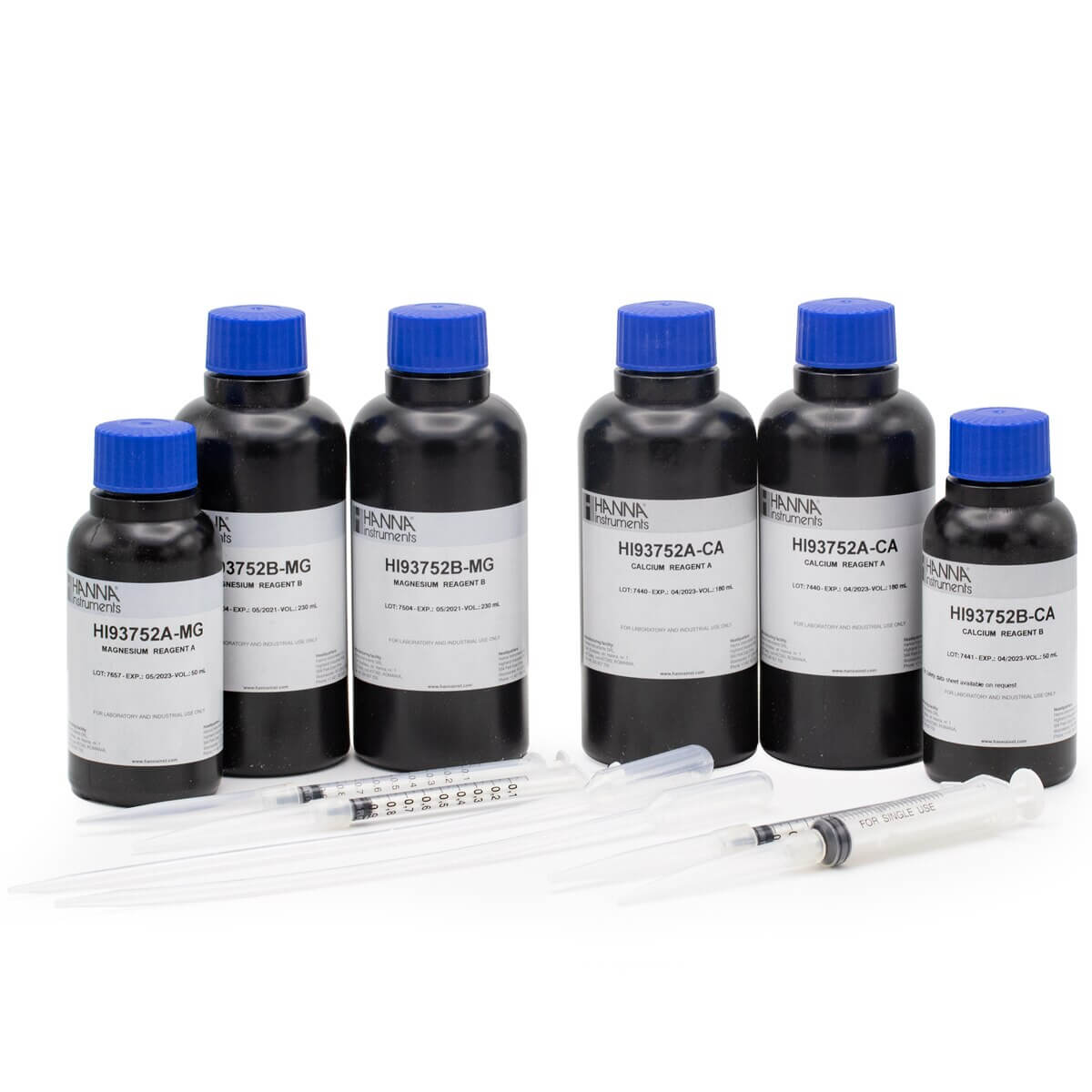 Los HI93752-01 son reactivos de alta calidad que suministran preparados, lo que permite al usuario obtener mediciones colorimétricas rápidas y precisas. Estos reactivos siguen una adaptación del método de la calmagita para determinar el calcio, y el método del oxalato para el magnesio. Al agregar los reactivos HI93752-01 a la muestra, la reacción se llevará a cabo y uno de los fotómetros portátiles compatibles de Hanna determinará la concentración de acuerdo al color producido. Los resultados se mostrarán en mg/L (ppm) como calcio o magnesio, dependiendo del método utilizado. Estos reactivos están diseñados para utilizarse con muestras que tienen un intervalo esperado de 0 a 400 mg/L de dureza de calcio y 0 a 150 mg/L de dureza de magnesio.